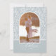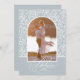 Your favorite photo, the word Believe in a beautiful script, white swirls and leaves pattern on dusty blue (can be changed) highlight the front and your personal greeting on the back of these holiday Christmas photo cards. MORE colors in our store.