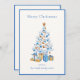 Cartão De Festividades Elegant Blue Script Watercolor Christmas Tree