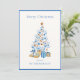Elegant Blue Script Watercolor Christmas Tree Holiday Card – Personalized Seasonal Greeting