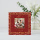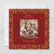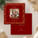 Celebrate the season with this beautiful Christmas card featuring a rich, red background adorned with an intricate, gold foil-inspired (not real gold foil) poinsettia and pine evergreen border. The front highlights your favorite family photo, adding a touch of joy and tradition to your holiday greetings. The back of the card includes a beautifully printed seasonal message, making it ready to send with love to family and friends. Personalized with your family photo, name and year, this festive design perfectly captures the cozy spirit of Christmas in an elegant and classic style.