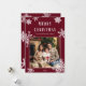 This timeless elegant Merry Christmas holiday card features white snowflakes on a rich jewel-toned deep burgundy red background, with a family photo and classic text.
