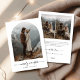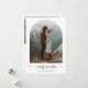 Celebre a sua primeira época de festas como um casal casado com um cartão que captura a magia da sua história de amor. Este elegante cartão de férias com foto de arco apresenta um refinado texto "Merrily Ever After" emparelhado com as suas fotos favoritas de casamento ou montanha de inverno - perfeito para anunciar o seu casamento ou simplesmente espalhar alegria.