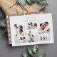 Compartilhe alegria com estes cartões de natal mínimos modernos que apresentam 6 das suas fotografias favoritas num esquema de colagem em grelha horizontal. "Feriados mais felizes" aparece no topo em caligrafia manuscrita e letra de serifa clássica. Personalize esta elegante design minimalista com seu nome de família e o ano abaixo.
