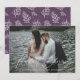 Comemore a alegria da época de férias enviando aos amigos e à família nossos Cartões de foto de Natal Elegantes Abundant Bessings Script. A placa apresenta sua foto horizontal favorita com "Bênçãos Abundantes" exibidas em uma camada branca de script de caligrafia. Personalize o cartão com fotos de férias com caligrafia com uma saudação personalizada e seu nome em letras brancas. A carta se inverte para exibir um padrão de folhagem de inverno roxo escuro e branco.