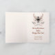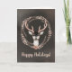 Este cartão de Natal elegante e não fotográfico tem uma ilustração de arte em aquarela desenhada à mão de um belo cervo dentro de uma grinalda botânica e "Boas Festas", em cores contemporâneas para um visual moderno e rústico da natureza. Dentro há outro desenho artístico de cervo com folhas e frutos, acima de "Feliz Natal e um Feliz Ano Novo", "Desejos sinceros" e o seu nome em texto manuscrito. Família e amigos vão amar este simples design de inverno florestal.