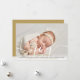 Um cartão de anúncio de nascimento elegante para as férias com a sua foto favorita, o nome do bebê e estatísticas de nascimento, e a sua mensagem de férias em tipografia moderna clássica sobre uma mensagem de alegria em letra cursiva chique. Concebido por Thisisnotme©