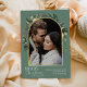 Este design apresenta um arco de verdura moderno com uma moldura dourada brilhante delicada e um contorno de moldura branca com uma única foto vertical. Para fazer alterações avançadas, selecione a opção 'Clique para personalizar ainda mais' na seção 'Personalizar este modelo'. Aqui, você pode editar/adicionar caixas de texto, cor e fonte.