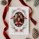 Apresentando nosso elegante cartão de feriado, embelezado com um espantoso design verde de inverno. Se você está procurando um cartão de feriado que exude sofisticação, luxo e estilo, este é o cartão perfeito para você. O trecho da coroa adiciona um toque de elegância vintage à placa. Ele apresenta um intricado design de cor de água botânica verde e vermelha de inverno, que é eterno e único, fazer que seu cartão de feriado se destaque do resto. No verso, você encontrará espaço para adicionar seus desejos pessoais de Natal a amigos e familiares.