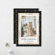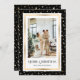 Cartão de Natal preto e dourado moderno, com um tipo de letra elegante e um fundo preto e dourado estrelado. Personalize facilmente este cartão festivo de Natal com a sua fotografia e o nome da família.