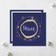 Divulgue a mensagem de paz nesta época festiva. O design moderno e dourado de estrela envolve a palavra Paz. Fundo azul. Adicione sua mensagem pessoal. Cartão perfeito para enviar a familiares e amigos para que saibam que estão nos seus pensamentos durante a época festiva.