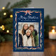 Compartilhe desejos de feriado com este sofisticado Cartões de foto de Natal dobrado com arco de fita vermelho-aquarela e um quadro verde gracioso em fundo de marinho. O design apresenta "Feliz Natal" em uma escrita branca refinada acima do nome da sua família, oferecendo um toque elegante e moderno. Dentro, a placa inclui espaço para uma mensagem de feriado impressa ou manuscrita. Uma escolha na moda para mostrar as fotos da sua família enquanto difunde a alegria de Natal.