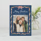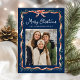 Envie saudações festivas com este elegante cartão com fotos de férias com um fundo marinho profundo que destaca maravilhosamente o arco de fita vermelho-aquarela e o quadro verde-verde. "Feliz Natal" é mostrado em um roteiro branco acima do nome da sua família, adicionando um toque refinado aos sotaques clássicos vermelho e verde. O verso oferece espaço para uma segunda foto e uma mensagem de feriado personalizada, fazer design uma maneira de mostrar fotos da família e celebrar a temporada no estilo.