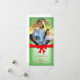 Este design não confessional apresenta um fundo desbotado verde e branco com texto vermelho. Uma fita vermelha brilhante e um laço combinando com redemoinhos vermelhos envolve o cartão para completar a aparência. Envie sua própria foto e personalize todo o texto neste design moderno. Mostrado aqui como um cartão de Natal, este design versátil pode ser personalizado para qualquer ocasião, adicionando tanto ou tão pouco texto quanto necessário. Se precisar de ajuda com a personalização, use o recurso de enviar mensagem anexado a esta loja. Este design é protegido por direitos autorais e não pode ser duplicado ou redistribuído.