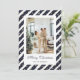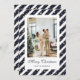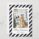 Cartão de Natal azul e branco moderno, com um quadro fotográfico azul e branco, com estrelas e uma letra elegante. Personalize facilmente este cartão festivo de Natal com sua foto e seu nome familiar.
