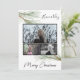 Elegante cartão de Natal com foto de árvore de Natal com verde de inverno e dourado. Cartão de foto com 3 fotos, folhagem de inverno, árvore de Natal de pinho e dourado, e texto "Have a Very Merry Christmas" (Tenha um Feliz Natal).