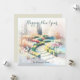 Deseje aos amigos e familiares um Feliz Ano Novo com este cartão elegante. Com uma ilustração sofisticada de um jardim numa manhã enevoada, o cartão pode ser personalizado com um nome(s) como toque final. A parte de trás do cartão é de uma cor pedra clara simples, para a sua própria mensagem manuscrita.