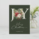 Celebre a magia da estação com este elegante cartão de Natal com um clássico design de "JOY" adornada com flores de inverno exuberantes e verde festivo. Colocado contra um rico fundo verde florestal, este eterno traz calor e sofisticação aos seus cartões de natal. Personalize este design usando a caixa modelo à direita ou clique em "Editar usando a ferramenta Design" para personalização avançada. Ajuste fontes, cores, posicionamento de texto e muito mais. Se precisar de ajuda, sinta-se à vontade para me enviar uma mensagem usando o botão abaixo — Eu adoraria ajudar!