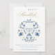 Cartão De Festividades Elegante Marinho Clássico Azul Feliz Hanukkah Flor