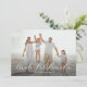 Aceite o calor de uma época de férias como nenhuma outra com nossos cartões de Natal tropicais modernos. Estas saudações de uma espécie mostraram uma foto de família tirada em uma camada sonhadora, perfeitamente justaposta com a expressão havaiana 'Mele Kalikimaka'. Adicionando um toque pessoal, seu nome de família ocupa o palco central em meio a essa fusão de conforto familiar e de atração exótica. Sacudir o cartão e revela um fundo branco limpo adornado com um charmoso design de Natal tropical aquoso, com uma mistura deliciosa de folhas de palma, ornamentos e estrelas brilhantes. Saia da multidão este ano e diga com uma reviravolta tropical.