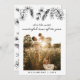 Cartão de Natal minimalista e elegante com a foto da sua família, desenho rústico de pinheiro feito à mão e caligrafia moderna. O cabeçalho diz: ´´é a época mais maravilhosa do ano´´ e o verso do cartão tem uma mensagem customizada para você personalizar os seus votos de Natal. Tudo em uma paleta de cores invernais sofisticada em preto e branco.