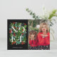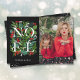 A palavra NOEL entre verde e bagas em um fundo preto sotaque sua foto favorita na frente com seus nomes e sua saudação pessoal na parte de trás dessas cartões com fotos de Natal. CORRESPONDENDO a itens na nossa loja.