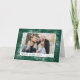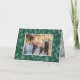 Cartão de feriado elegante com sua foto horizontal na frente, emoldurado por flores de poinsettia desenhadas por caneta branca, pinecones e grampos de pinheiro em um fundo verde festivo. "Feliz Natal" aparece em caracteres clássicos verdes com o nome da sua família à direita. A dentro da placa apresenta um padrão botânico verde no topo com a mensagem personalizada mostrada abaixo. A parte traseira da placa possui uma foto adicional.