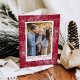 Cartão de feriado elegante com sua foto vertical moldada por flores de poinsettia desenhadas por canetas brancas, pinecones e buchas de pinheiro em um fundo festivo de amora. "Felizes Feriados" é exibido em caracteres clássicos de amora-de-groselha com o nome da sua família abaixo. O dentro do cartão de feriado moderno apresenta um padrão botânico de amora com sua mensagem personalizada ou deixa o vazio para escrever o seu próprio. A parte traseira da placa exibe uma foto adicional.