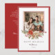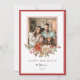 Compartilhe alegria festiva com este elegante cartão de férias com uma fronteira vermelha clássica e uma foto da família central moldada por um belo arranjo floral de poinsettias vermelhas, pinecones, bagas e verde de inverno. O design eterno combina elementos naturais com um layout moderno e limpo, perfeito para enviar desejos de feriados quentes para os entes queridos. A parte traseira do cartão inclui um cartões de natal já impresso, portanto, ele está pronto para ser enviado e ainda oferece personalização pessoal com seu nome e ano de família. Um cuidado atencioso que amigos e parentes irão tesourar por anos.