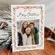 Compartilhe saudações sinceras com este elegante cartão com fotos de feriado com um arco de fita vermelho-aquarela e um quadro verde fluindo em um fundo de creme suave. "Feliz Natal" é exibido em um roteiro verde acima do nome da sua família, com espaço no verso para uma segunda foto e uma mensagem de feriado personalizada. Uma forma eterno e festiva de mostrar fotos da família e espalhar alegria de Natal.