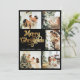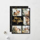 Envie o festival com um Cartão de Colagem de Fotos de Natal Preto e Dourado! Apresentando um roteiro de vídeo em tons de ouro e um fundo preto elegante, este cartão exibe lindamente fotos favoritas da família. É a mistura perfeita de elegância clássica e visões modernas, fazer-a como um eterno guardião para os entes queridos. Personalize com fotos e um nome de família para criar um cartões de natal único!