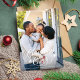 Este Cartões de foto de Natal festivo apresenta uma foto vertical do quadro de cheio (também conhecida como "sangramento de cheio") e uma bela saudação de roteiro em branco. A saudação à frente diz "Feliz Natal". O dorso tem um padrão de flocos de neve branco e azul claro. Você também pode adicionar outra foto e/ou texto adicional ao verso.