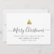 Cartão de feriado moderno minimalista para a família com caligrafia elegante que diz Merry Christmas sob uma árvore de Natal dourada impressa. Abaixo há espaço para sua mensagem personalizada, bem como espaço adicional no verso para saudações mais detalhadas.