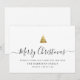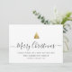 Cartão de férias moderno minimalista para a família com caligrafia elegante que diz Feliz Natal sob uma árvore de Natal dourada impressa. Abaixo há espaço para sua mensagem personalizada, bem como espaço adicional no verso para saudações mais detalhadas.