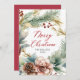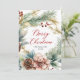 Caligrafia Elegante Moderna Script Watercolor Greenery Botanical Wreath Christmas Non Photo Christmas Cards Esta festiva Cartões de natal de Natal apresenta uma coroa aquosa com ramificações de pínus, bagas vermelhas e pinecones. Com um "Feliz Natal" a saudar o texto que está escrito em vermelho num tipo de letra com letras muito arejadas. No lado inverso, fundo vermelho com mensagem pré-feita. Esta Cartões de Natal festivos e personalizados são uma forma excelente de lembrar aos entes queridos que vocês estão pensando sobre eles nesta temporada de festas de inverno.