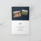 Um cartão fotográfico elegante, com galhos de pinheiro desenhados à mão, numa folha de cor prata e azul marinho festiva desenhada por Stacey Meacham. O dentro tem duas fotos e uma mensagem de feriado emocionante para amigos e familiares. Clique no botão editar para personalizar este design com suas fotos e detalhes.