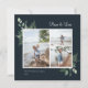 Floresta botânica de cor aquática elegante, cartão com fotos de férias. Recursos, design de colagem quadrática de 3 fotos, texto branco e fundo azul marinho festivo.