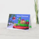 Cartão de saudação com a minha imagem de um elfo em alguns presentes de Natal vestindo óculos de sol e falando no seu celular. Dentro personalizável.
