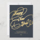 Cartão de férias de marinho azul escuro elegante com script de caligrafia de Feliz ano novo de ouro falso clássico. +++++++++++++++ Fácil de personalizar com o seu texto em ambos os lados. +++++++++++++++++++++++++++, OBSERVEM que a cor de fundo é editável. Você pode alterá-la depois de selecionar a opção PERSONALIZAR abaixo do menu PERSONALIZAR TI. Se você não se sentir à vontade mudando-o, peça ajuda ao Zazzle Live Design ou ao designer.