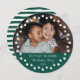 Este cartão fotográfico elegante e moderno pode também servir como um ornamento de árvore de Natal! Basta furar um buraco no círculo superior do desenho. Em seguida, coloque uma fita pelo buraco e faça um laço! O bloco de cor na parte inferior pode ser personalizado para qualquer cor que você desejar (mostrado em verde)! A parte traseira do cartão contém listras brancas desenhadas à mão sobre um fundo verde. Entre em contato comigo (Tracey) em orabellaprints@outlook.com para obter informações sobre o design ou produto.