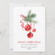 Enfeite Vermelho Elegante Cartão de Natal Feliz Saudação de Férias.