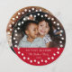 Este cartão de foto moderno e encantador funciona como um enfeite de árvore de Natal. Basta fazer um furo no círculo superior do meio no desenho. Em seguida, coloque uma fita pelo buraco e amarre-a em um laço!
