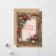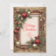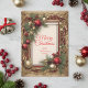 Adorne seus cumprimentos de férias com um estilo luxuoso e vintage neste cartão personalizável. O design apresenta uma magnífica moldura dourada, transbordando de fitas escarlates ricas e galhos de pinheiro exuberantes. Enfeites dourados brilhantes e vermelhos mate criam um sentimento clássico e atemporal. Personalize com o nome da sua família e um ano personalizado para enviar um cartão de Natal verdadeiramente elegante e memorável.