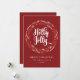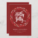 Envie seus cartões de natal queridos com um simples cartão de feriado não fotográfico. O belo cartão de férias apresenta uma coroa de Enfeites de natal e folhagem de inverno em tons de vermelho, burgundy, marfim e ouro. A frase "Holly Jolly" é exibida no centro da coroa, em letras brancas, com fundo de burlão. Personalize a frente do cartão de Natal não fotográfico adicionando um cartões de natal personalizado, seu nome de família e o ano. A placa se reverte para incluir sua mensagem personalizada em um fundo burgundy.