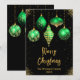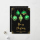 Envie votos calorosos de férias com este cartão de Natal sofisticado que apresenta cinco ornamentos elegantes em tons de verde e dourado. Cada ornamento exibe um design único - floral, floco de neve, brilho falso pingando, padrão de diamante e estrelas - contra um fundo preto rico com faíscas douradas. A paleta luxuosa e o layout refinado tornam este cartão ideal para famílias elegantes, saudações formais ou mensagens corporativas de Natal. Perfeito para quem ama a elegância moderna com um toque festivo.