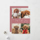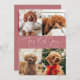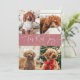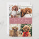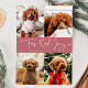 Cartão-modelo de foto de Natal bonito e engraçado para os donos de cães apresentando um texto manuscrito que diz "pelo real alegria" com 4 fotos do seu cachorro. O fundo é rosa.