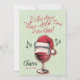 Levantem um copo para o feriado com um cartão de Natal engraçado com um copo de vinho vestindo um chapéu de Papai Noel! Perfeito para amantes de vinho com senso de humor, este cartão de saudação festivo é uma maneira divertida de dizer "Feliz Natal" com um esplêndido saco de asas. Quer você esteja dando para seu melhor amigo, colega de trabalho, ou anfitrião favorito, este cartão adiciona uma reviravolta divertida aos desejos tradicionais de feriado. Excelente para festas com tema de vinho, presentes para Papais noeis secretos, ou qualquer pessoa que acredite que a época é melhor servida com um copo de cheio!
