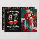 Envie um twist engraçado e moderno de meme nesta temporada com este design de cartão de Natal inspirado nos anos 67. Com as mãos de Papai Noel jogando entre os números "6-7" em listras de bengala, combinado com um acento de árvore de Natal festivo e estrelas amarelas douradas espalhadas. Personalize sua própria foto da família, saudações e nomes usando o modelo online fácil. Uma maneira divertida e alegre de compartilhar alegria natalina com amigos, familiares, professores e trocas de presentes — perfeito para aqueles que amam o humor de meme e uma estética de Natal única.