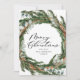 Escrito de coroa foliar mínimo moderno Cartão de Natal Feliz de Natal. O eucalipto pintado à mão, o ramo do pinheiro, a folhagem mínima e a coroa rattan moderna dão a este cartão de feriado uma sensação luxuosa. Em verdes clássicos, castanhos e cinzentos.