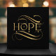 Mensagem elegante, chic e profunda de "Esperança" em letra de caligrafia suave e personalizada no estilo de ouro de gradiente falso martelado em fundo preto. Inclui campos de texto editáveis.