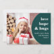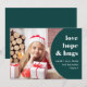 Estas cartas alegres e divertidas dizem "amor, esperança e abraços", com desejos para o feliz ano novo 2022! Um quadro circular verde, arrojado e profundo abraça a sua própria fotografia pessoal, e a grande tipografia branca moderna acrescenta-se à na moda.
